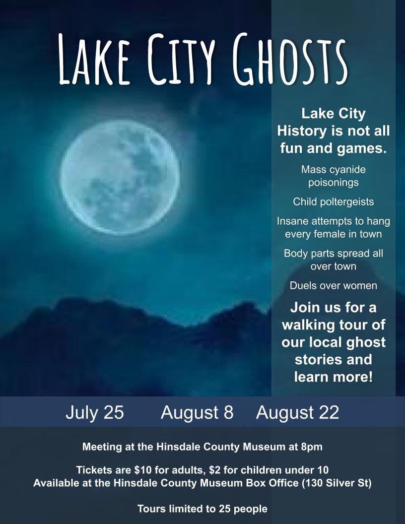Join us for a walking tour of our local ghost stories and learn more! Meet at the Hinsdale County Museum at 8:00pm