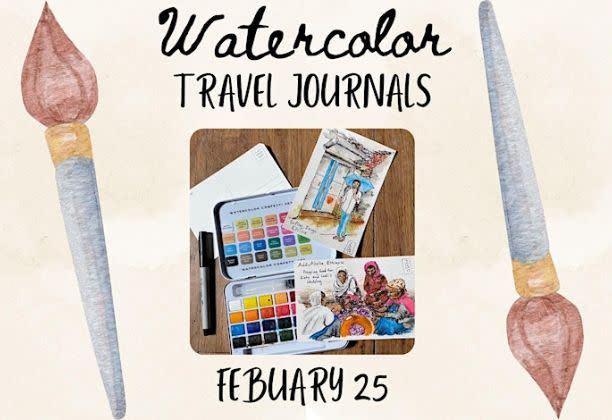 Create a journal of watercolor postcards using photos from your most recent travels. Watercolor artist, Linda Downs will teach you the basics of watercolor as you paint your travel adventures from your pictures in this journal class.
