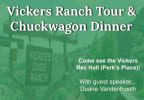 Vickers ranch tour and chuckwagon dinner! Come see the Vickers Rec Hall (Perk’s Place). With guest speaker Duane Vandenbusch!